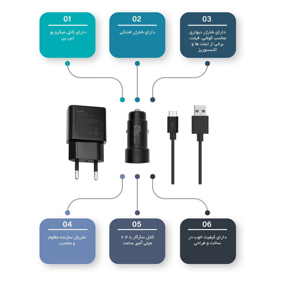 مجموعه لوازم جانبی شیائومی مدل S11C در یک پکیج شامل سه عدد وسیله ارائه می شود. این پکیج شامل شارژر فندکی، شارژر دیواری و یک عدد سیم رابط microUSB است. لازم به ذکر است که این مجموعه را می توان برای هر دو نوع وسایل اندرویدی و اپل استفاده کنیم. کابلی که در این پک وجود دارد فقط مخصوص دستگاه هایی است که دارای سیستم عامل موبایل اندروید است. این کابل microUSB می تواند تا جریان معادل ۲.۴ میلی آمپر ساعت سازگار باشد. طول این کابل حدود یک متر است که برای استفاده در خودرو می تواند اندازه ای مکفی باشد. ما در این پک شاهد یک شارژر فندکی هستیم که کار ما را در خودرو بسیار راحت می کند و به وسیله آن می توانیم گوشی های خود را شارژ کنیم. از این نوع شارژر می توانیم برای تمامی گوشی ها استفاده کنیم. کاری که این شارژر فندکی انجام می دهد جریان برقی که در فندک ماشین وجود دارد را تبدیل به برق مورد نیاز و قابل تحمل گوشی کرده و آن را با یک درگاه USB انتقال می دهد. بعد از کابل و شارژر فندکی به پر استفاده ترین قسمت این پکیج یعنی شارژر دیواری می رسیم. شدت جریان این شارژر ۲.۱ آمپر بوده و به همین دلیل این شارژر برای تمامی گوشی ها، فبلت ها و برخی تبلیت ها قابل استفاده است. یکی دیگر از کارایی های این شارژ و یا این پکیج در مورد وسایلی را که انجام بسیاری از کارهای ما را آسان تر کرده اند. به این وسایل، دستیاران الکترونیکی یا همان اکسسوریز می گویند. وسایلی چون هدفون، لامپ های شارژی، پنکه های کوچک همراه و خیلی از وسایل دیگر که با شارژ کار می کنند و در ابعاد، وزن و از همه مهم تر با کارایی های متفاوت می توان آن ها را یافت. شارژر دیواری مجموعه لوازم جانبی شیائومی مدل S11C مدل را می توان بیشتر برای همین دستیاران الکترونیکی و یا گوشی های قدیمی استفاده کرد. برند شیائومی، یکی از برند هایی است که توانسته جای خود را در بازار های ایران و یا حتی جهانی به راحتی و محبوبیت باز کند. این برند دارای کالاهای با کیفیتی است که در زمان استفاده می تواند رضایت شما را جلب کند.