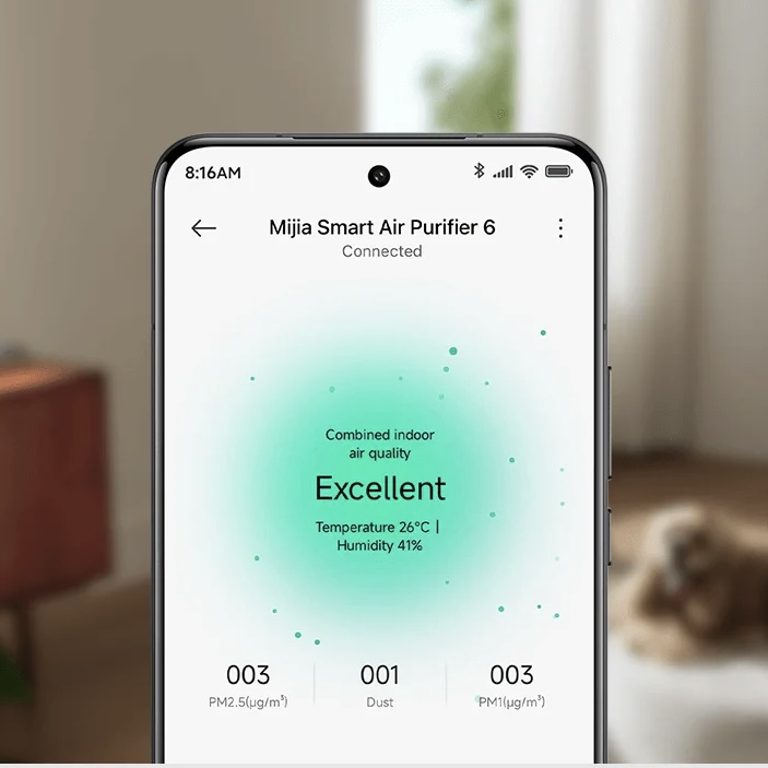 - سایر مشخصاتمجهز به ۵ حسگر هوشمند (PM1، PM2.5، گردوغبار، دما و رطوبت) برای پایش دقیقتر کیفیت هوا. دارای سیستم استریلسازی UV-C جهت از بین بردن باکتریها و میکروارگانیسمها. پشتیبانی از یون منفی (Negative Ion) برای بهبود طراوت و حذف بوهای ناخوشایند. قدرت تصفیه (CADR) تا حدود 443 مترمکعب در ساعت – مناسب برای فضاهای ۶۰ تا ۹۰ مترمربع. صدای بسیار پایین در حالت خواب، حدود ۳۲ دسیبل. قابل کنترل از طریق اپلیکیشن Xiaomi Home با اتصال Wi-Fi (باند ۲.۴ گیگاهرتز). دارای نمایشگر رنگی برای نمایش همزمان شاخصهای PM1، PM2.5، دما و رطوبت.